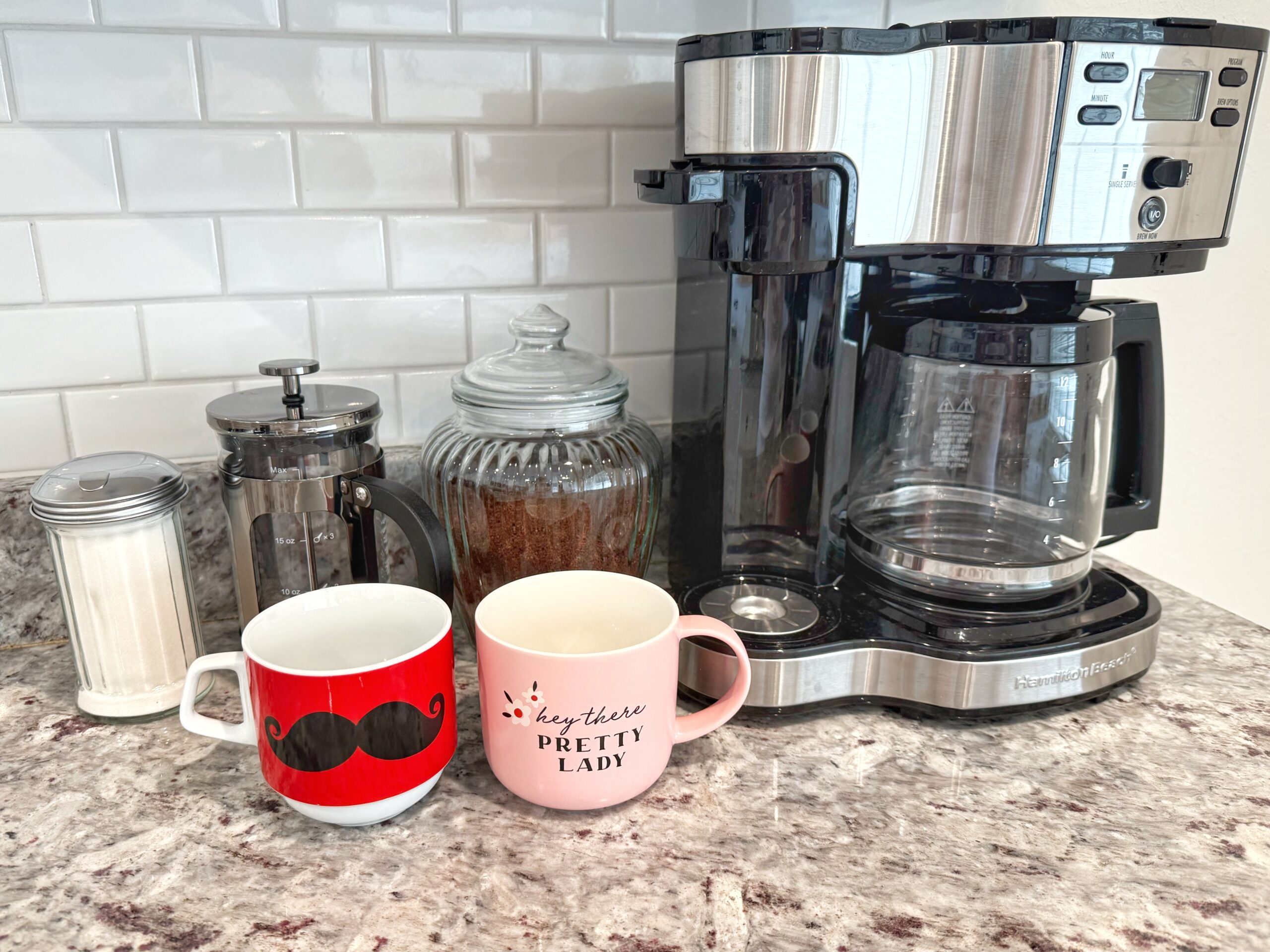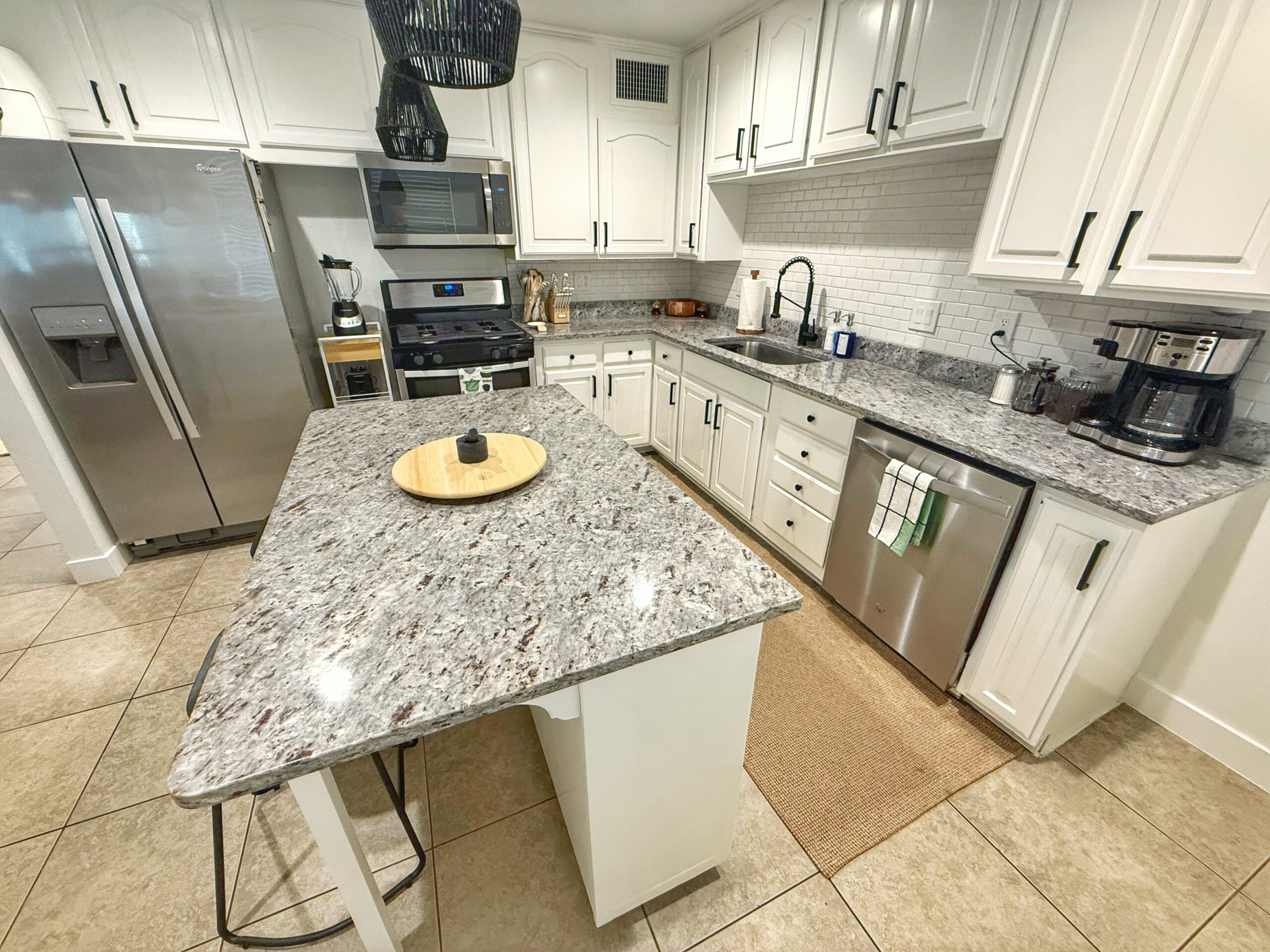 Channel your inner chef in our fully equipped kitchen, complete with all essentials to whip up delicious meals or mix drinks before hitting the town. Don’t forget the coffee bar too! Coffee is vital to each day, so naturally we want to provide that for our guests! Drip coffee pot, single serve and French Press, along with ground coffee and sugar is readily available for all guests.