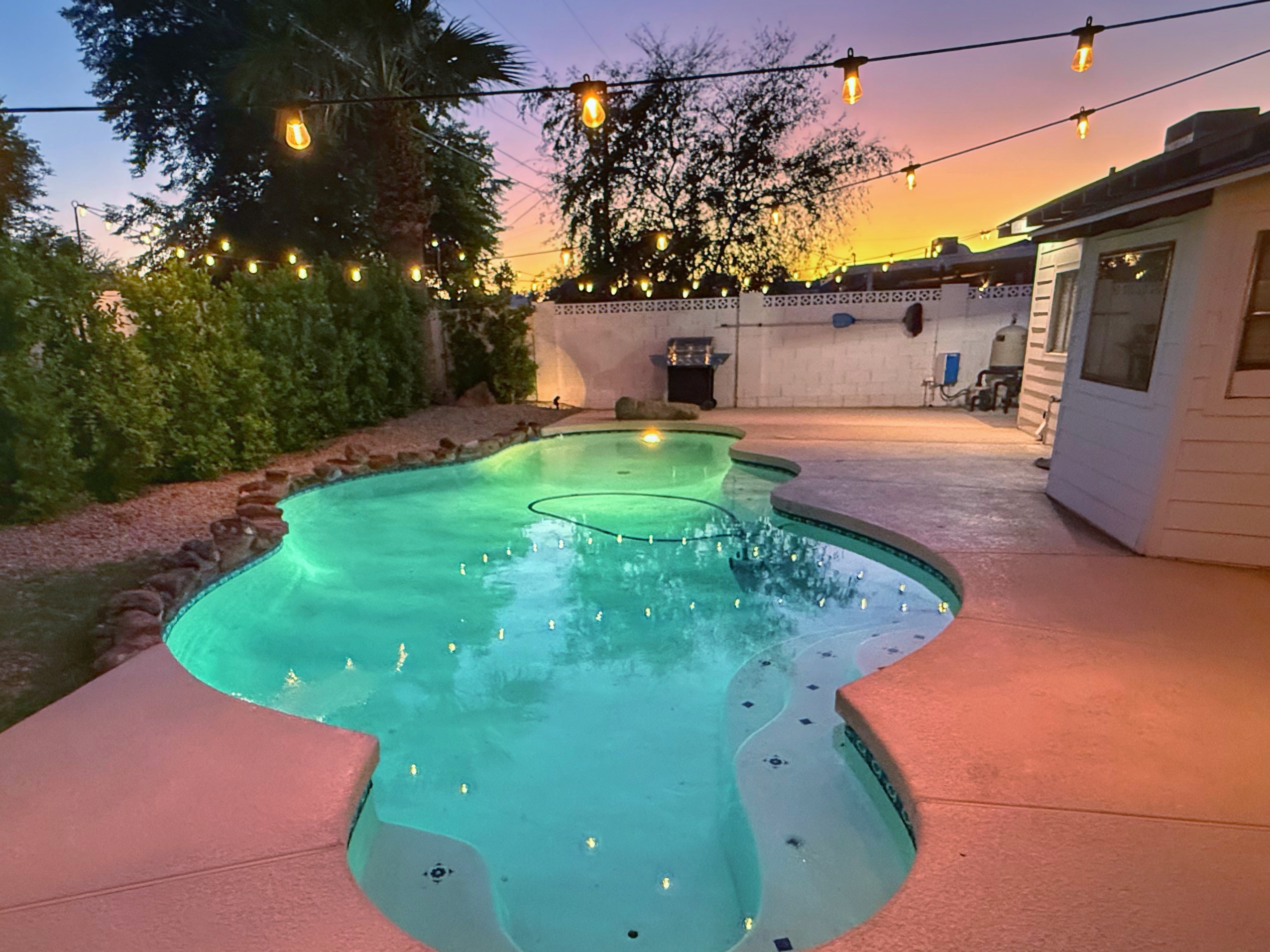 Step outside to your private backyard oasis, where you can dive into the sparkling pool or unwind in the soothing hot tub—perfect for soaking up the sun during the day, watching the sun set over the palm trees, and stargazing by night. Enjoy grilling up a sizzling barbecue, with plenty of seating for al fresco dining!